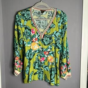 Vineet Bahl Green Floral Embroidered Tunic with Flared Sleeves Size XS