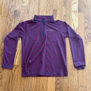 Dynamic stripes in blue and red. Classic Patagonia style.