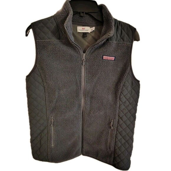 Vineyard Vine Fleece Vest Jacket Size M Fully Zip Pockets Gray