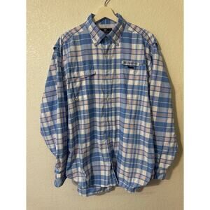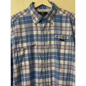 Vineyard Vine Harbor Shirt Men's Fishing Blue Pink Plaid Size Large