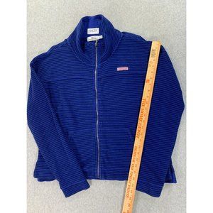 Vineyard Vines 100% Cotton Striped Full Zip Jacket (Women's Medium) Blue