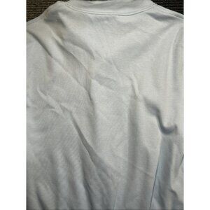 This Vineyard Vines 1/4 Zip Long Sleeve Mens XL Blue Sweatshirt is a stylish and comfortable pullover featuring a mock neck and a woven fabric made of cotton. The classic blue color and whale logo accents add a touch of sophistication to the solid pattern. With a regular fit and long sleeves, this sweatshirt is perfect for winter, fall, and spring seasons, making it a versatile addition to any man's wardrobe. Easy to care for with machine washable instructions, this sweatshirt is designed for casual wear and walking activities.