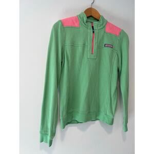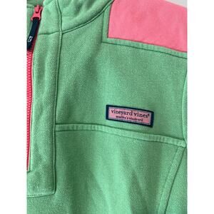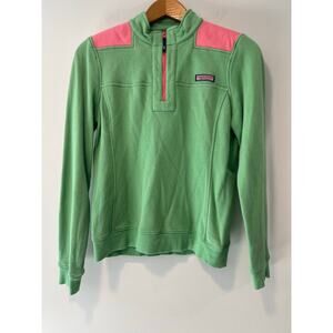Vineyard Vines 1/4 Zip Pullover Sweatshirt 100% Cotton Green & Pink Medium JL