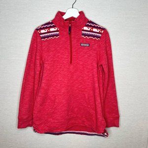 Vineyard Vines 1/4 zip Pullover Sweatshirt with Fair Isle Whale Trim/Accents - S