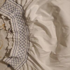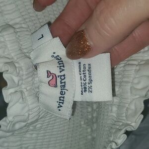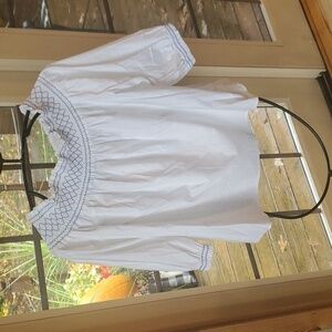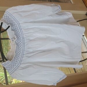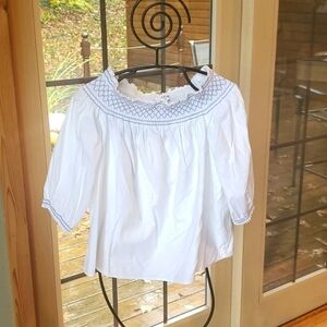 Vineyard Vines 3/4 Sleeve Smocked Blue & White Stitching Sz L Blouse Tunic