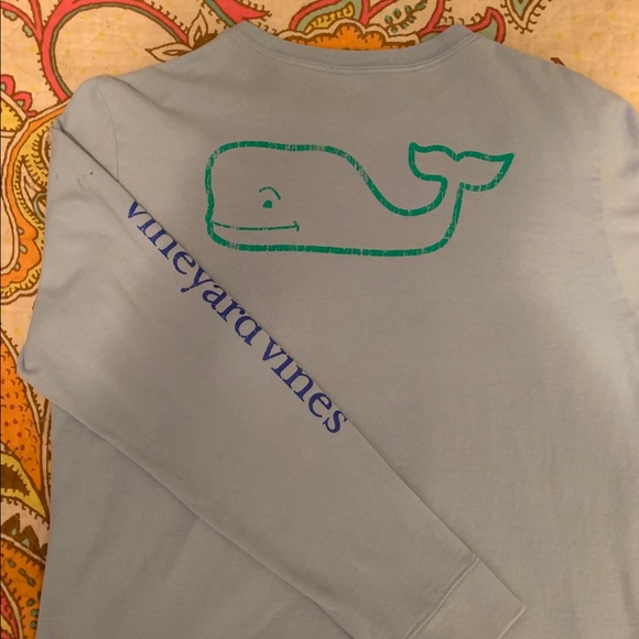 Long sleeve Vineyard Vines T-shirt with very small spots on the sleeve, collar, and pocket.