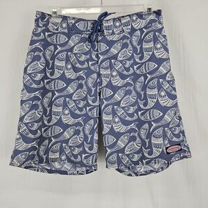 Vineyard Vines All Over Aztecan Fish Print Pattern Boardshorts Mens SZ 32×9