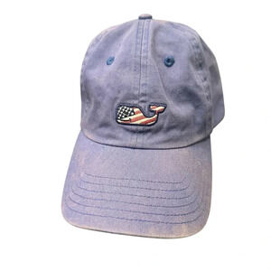 Vineyard Vines American Flag Whale Baseball Cap w/ Leather Strap in Faded Blue