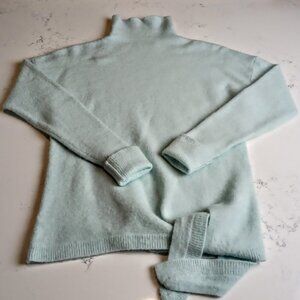 Cozy soft aqua blue long-sleeve sweater from Vineyard Vines with elevated neck and waist tie.