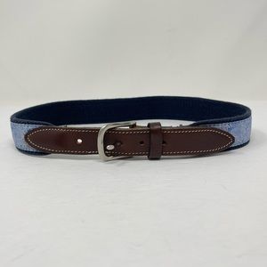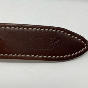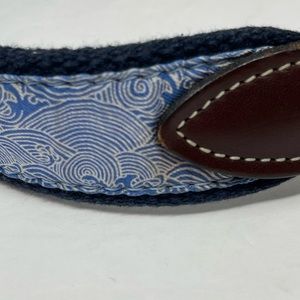 Vineyard Vines Belt Mens 26 Blue White Surcingle Waves Brown Leather Made in USA