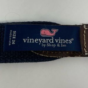 Vineyard Vines Belt Mens 26 Surcingle Blue Waves Brown Leather Made in USA Silver Buckle. Good pre-owned condition. Some marks on blue print. Please review photos for any other signs of wear. See photos for measurements. Ships quickly from smoke-free home.