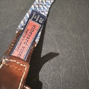Vineyard Vines Belt Womens 28 Blue White Brown Woven Stretch Leather Preppy