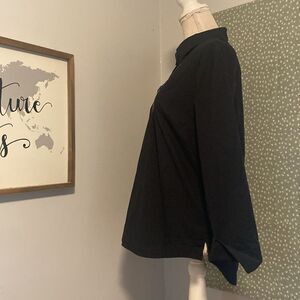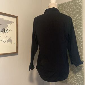 Vineyard Vines Black 3/4 Sleeve Collared Velvet Embellished Blouse