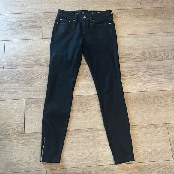 Vineyard Vines Black Coated Denim Zipper Skinny Jeans Size 2. Excellent used condition.