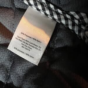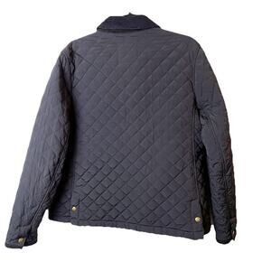 The Vineyard Vines Black Quilter Utility Jacket in size X Large is a stylish and fashionable outerwear option for women. Made from a durable cotton blend material, this jacket features a quilted design with a unique turtle accent. The black color adds a sleek and classic touch, making it versatile for various outfits and occasions. Perfect for those looking for a chic and eye-catching piece to add to their wardrobe.