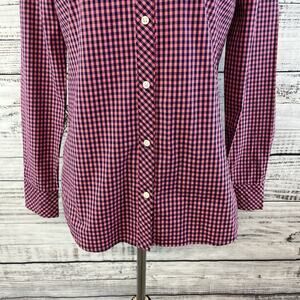 Vineyard Vines Blouse Shirt size 0 Pink Navy Blue Gingham Check Whale Casual