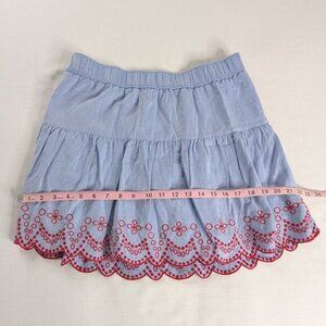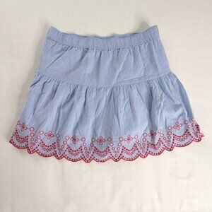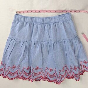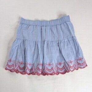 Vineyard Vines Blue Chambray Red Scalloped Eyelet Embroidered Tiered Mini Skirt