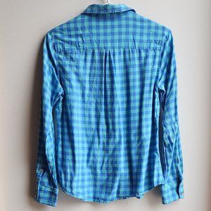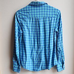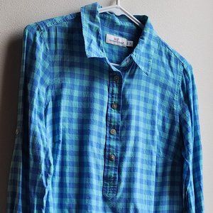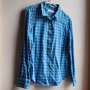 Vineyard Vines Blue Checked Half-Button Down Blouse Size 2