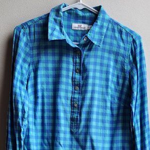 Vineyard Vines Blue Checked Half-Button Down Blouse Size 2. 100% cotton. Excellent condition.
