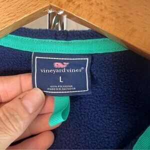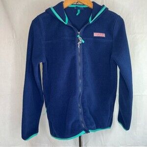 Vineyard Vines Blue Green Trim Full Zip Light Hooded Fleece Jacket Youth LG