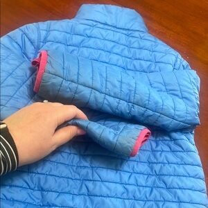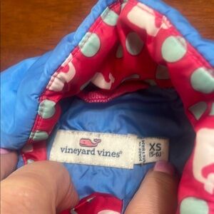 Vibrant blue jacket with playful pink and white accents. Features signature Vineyard Vines style.