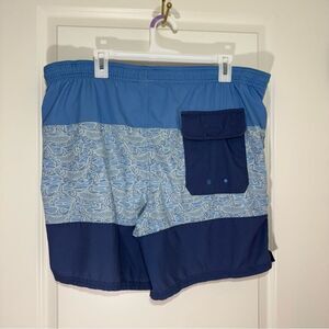 Gently worn men’s size large blue patterned drawstring swim trunks. Please review all photos for any signs of wear-pictured as is. Disclaimer: Any items with any wear/staining has not been treated, and unsure of ability to remove/treat condition. Comes from a smoke free home, bundle with other items to save & minimize shipping cost.