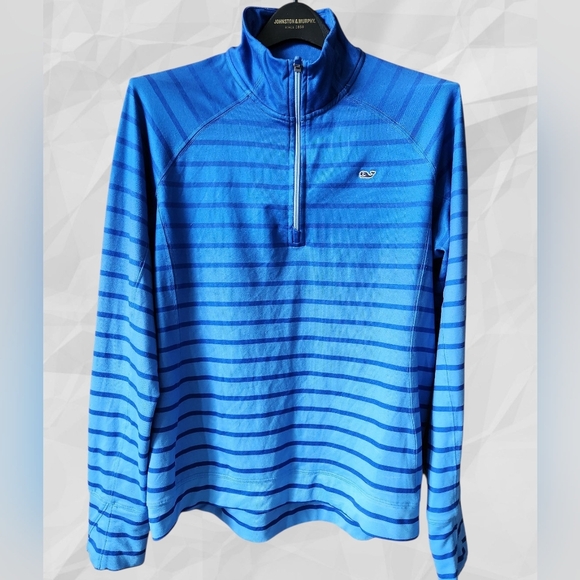 Vineyard Vines Blue Striped Performance Quarter-Zip Pullover - Sz L