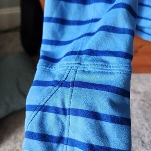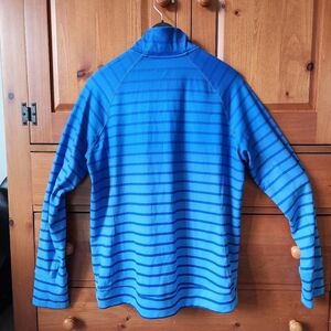 Stylish ombre blue striped quarter-zip Performance pullover. Perfect for casual wear. Snug fit...made of Polyseter and Spandex. GREAT condition, hardly worn. From non-smoking home.