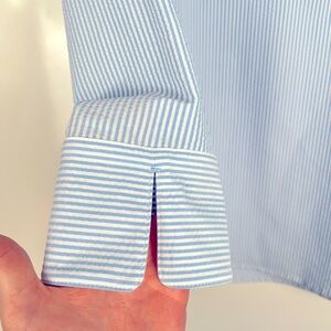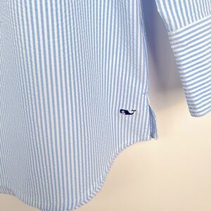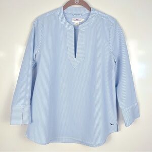 Elevate your wardrobe with this stylish blue striped tunic shirt from Vineyard Vines. Perfect for any occasion, this blouse combines comfort and elegance. Good used condition.