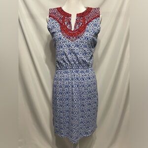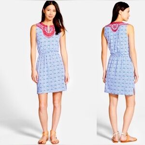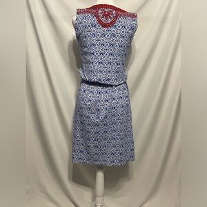 Vineyard Vines Blue White Tile Print Red Embroidered Trim Casual Dress