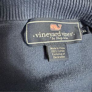 Experience comfort and style with this Vineyard Vines blue zip-up sweater. Crafted from a soft knit material, it features a stand-up collar and a sleek metal zipper, making it perfect for versatile, casual wear. The rich navy hue and ribbed cuffs add a timeless touch to your wardrobe. Size 2X #vineyardvines #casual