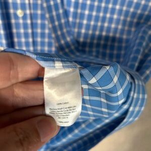This Vineyard Vines shirt features a classic blue and white checkered pattern, perfect for a relaxed, casual look. Made from a comfortable cotton blend, it offers a traditional collar and a relaxed fit for everyday wear.