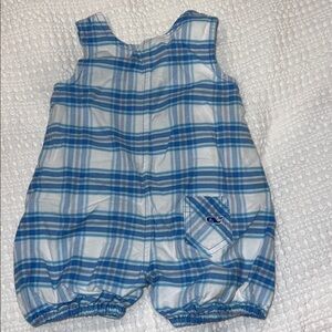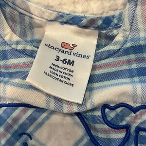 Charming plaid romper with whale embroidery. Ideal for little ones.
