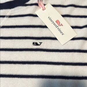 Embrace a classic look with this Vineyard Vines hoodie, featuring a striking blue and white stripe pattern. The solid navy trim at the neckline and cuffs adds a touch of sophistication. Perfect for casual outings, this sweatshirt combines comfort with timeless style.