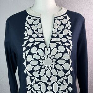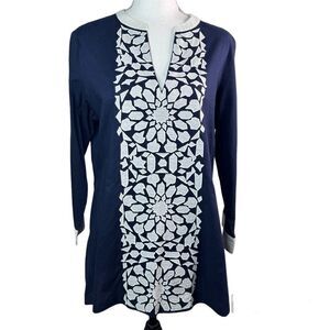 Vineyard Vines Blue/White 3/4 Sleeve Appliqué Tunic Top Blouse Women’s Sz M
