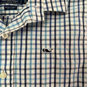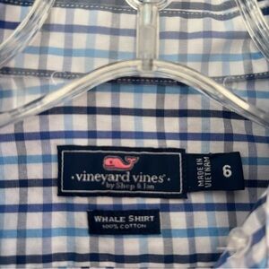 Vineyard Vines Boys Blue Gingham Button Down Whale Shirt 6 Preppy Easter Church. Gently worn with no flaws to note.