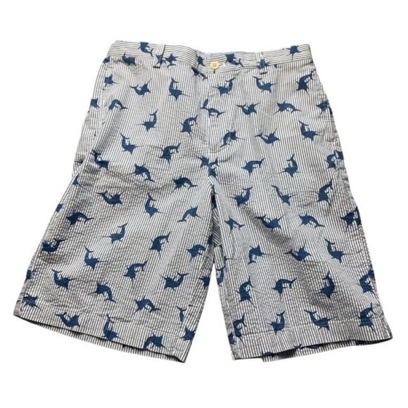 Vineyard Vines Boys New Seersucker Swordfish Blue Shorts Size 14