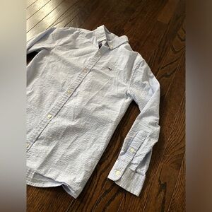 Details: Cotton/Spandex blend. Gorgeous button-down. Subtle stripe details. Button down collar stays. Originally $78!!
