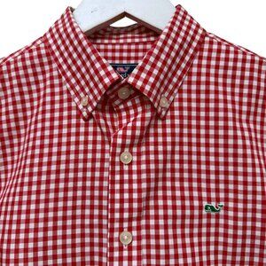 Vineyard Vines Boys Shirt Large Red Gingham Check Button Up Holiday Christmas