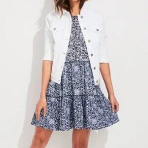 Vineyard Vines Brand Women's Medium Tiered Seersucker Blue & White Floral Dress