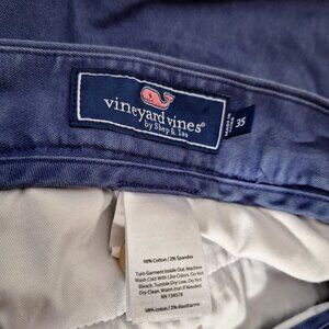 Vineyard Vines Breaker Chino Shorts Size 35 Navy Blue Embroidered Whale Flag