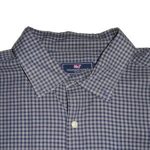 Vineyard Vines Button Down Shirt Plaid Blue Gray Long Sleeve Tucker XL