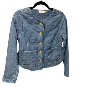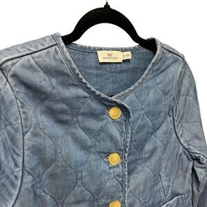 Vineyard Vines Button Up Chambray Quilted Jacket Light Indigo Denim Womens XXS