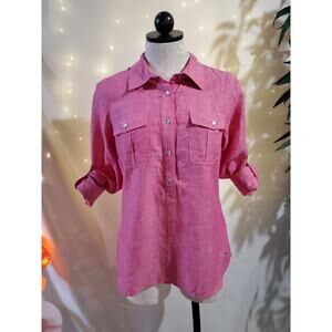 Vineyard Vines Camp Popover Linen 1/2 Shell Button Pink Shirt Womens Size 4 Top