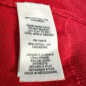 Classic, bright red pullover sweater from Vineyard Vines lone sleeves; ribbed at collar and hems; leather zipper pull; 90% cotton/10% cashmere.