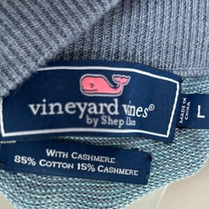 Vineyard Vines Cashmere Cotton Blend Quarter Zip Sweater size Large blue striped