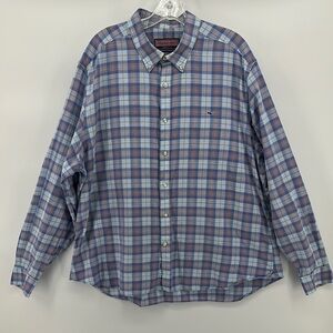 Vineyard Vines Casual Blue & Brown Plaid L/S Button Down Mens Shirt Sz XL