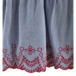 Vineyard Vines Chambray Flounce Skirt sz L Red Eyelet Scallop Hem Coastal Preppy
