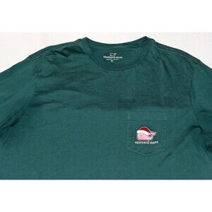 Crafted for comfort and style, the Vineyard Vines Charleston Green Santa Whale T-Shirt is a quintessential piece for the festive season. Designed with a classic fit in mind, this men's XL long-sleeve tee boasts a solid green hue, accented by a unique chest pocket featuring a whimsical Christmas theme.