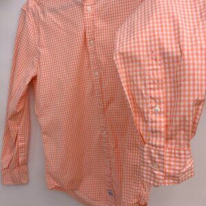 Vineyard Vines Classic Fit Murray Orange Checkered Button Down Shirt Size Small